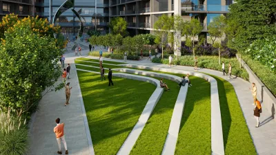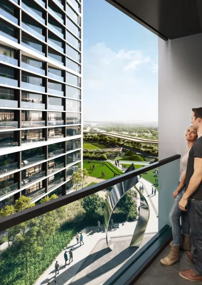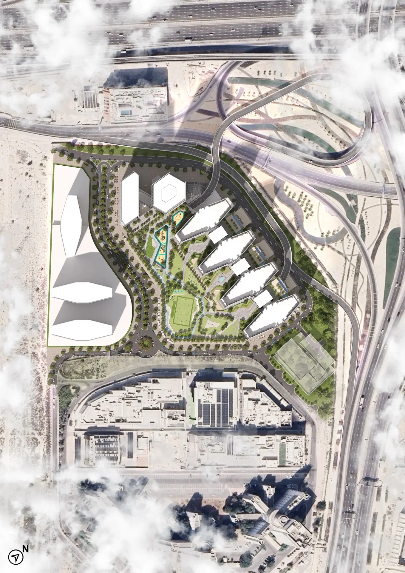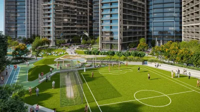 Parco urbano sopraelevato, piscine, fitness, spazi verdi, cinema all’aperto, aree bimbi e business centre.