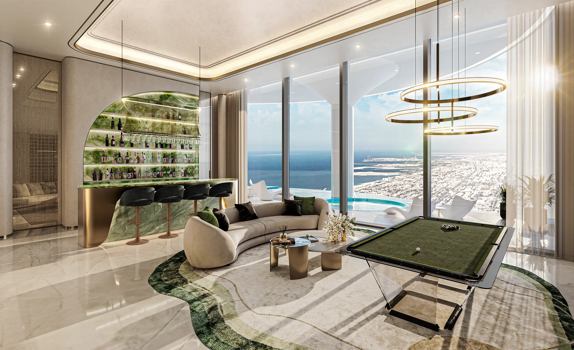 Collezione esclusiva di sky villas firmate Cavalli, tutte con piscina privata, grandi terrazze e layout pensati per massimizzare privacy, luce e viste panoramiche