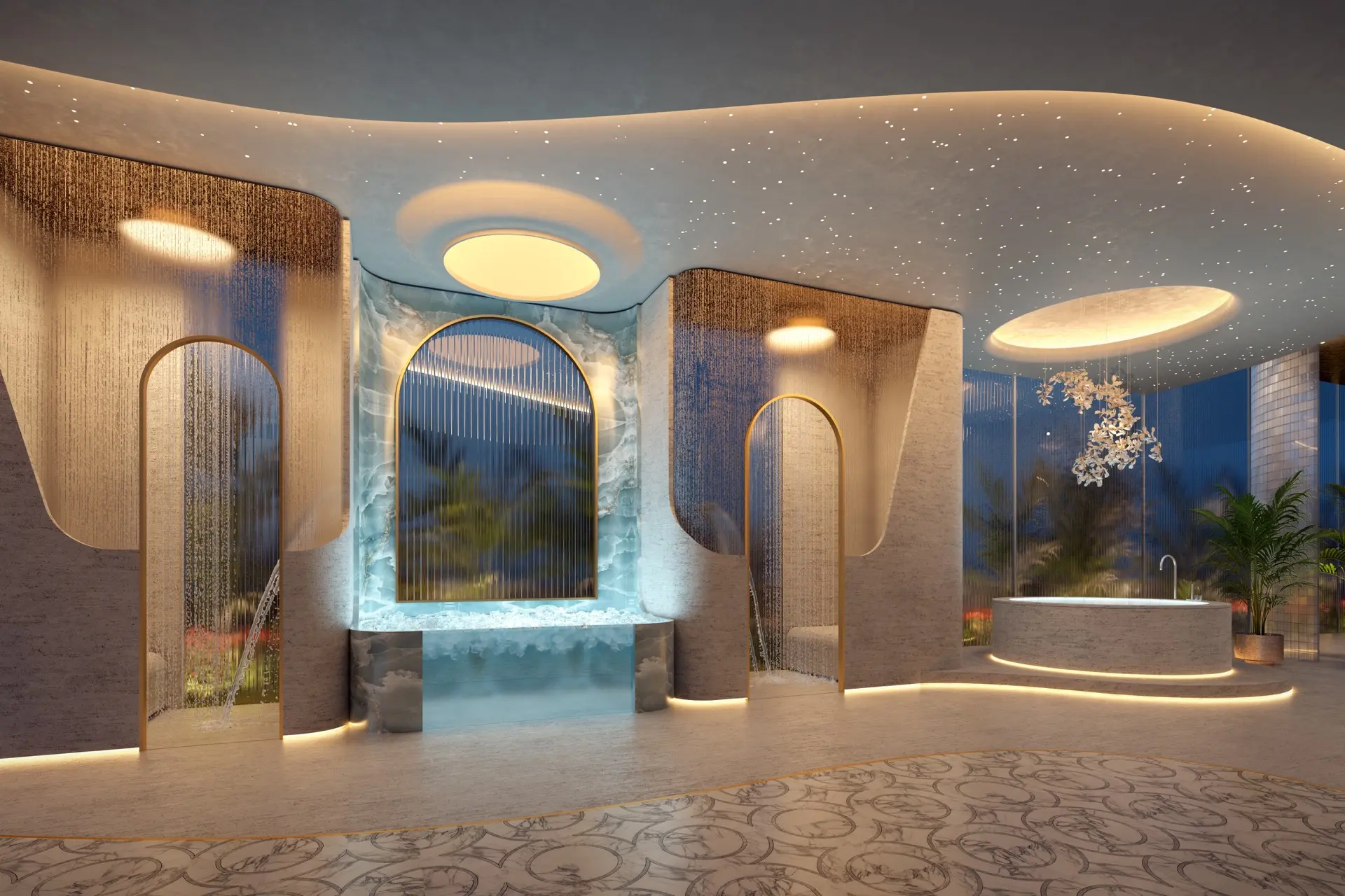 Gli interni sono pensati come un’estensione dell’haute couture di Cavalli: materiali ricercati, ambienti generosi, giochi di luce naturale e una cura maniacale per i dettagli, dagli spazi living alle camere ensuite con walk-in closet.