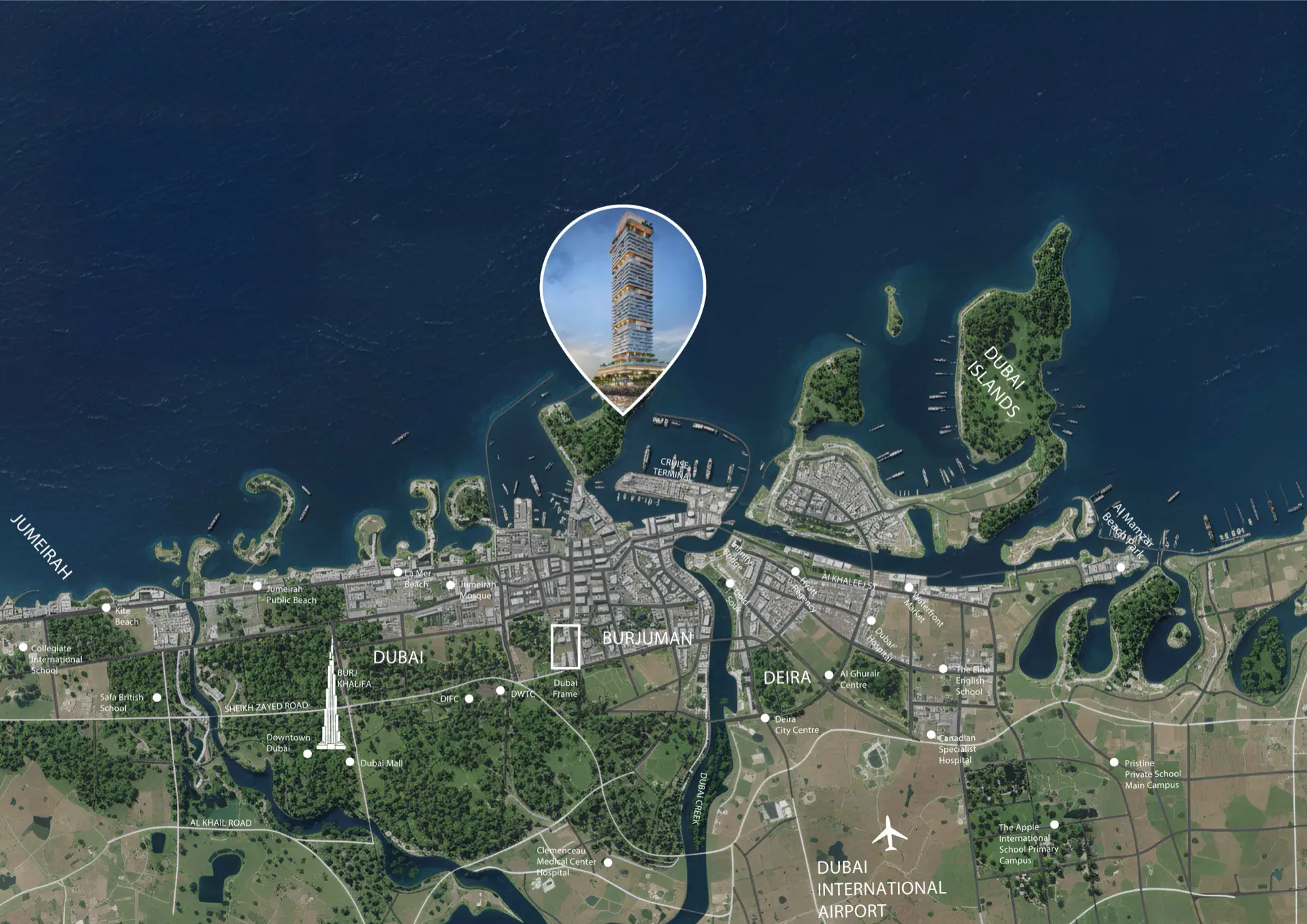 Dubai Islands è una scelta di posizionamento, non solo una location. Qui il mare è protagonista e la percezione di valore è immediata: viste aperte, atmosfera da resort e un contesto che parla a residenti e investitori internazionali.