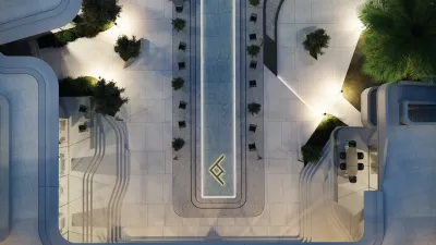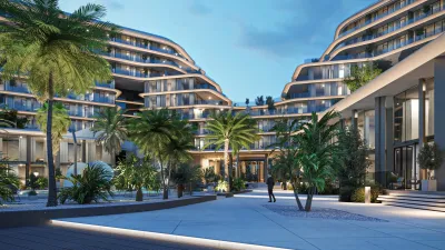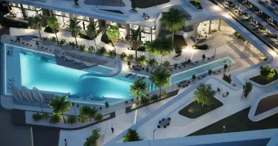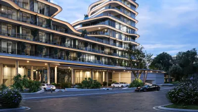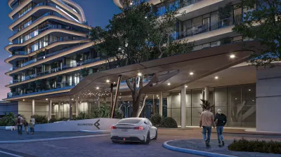 Edificio a sviluppo orizzontale con layer dinamici e hotel-style drop-off, pensato per fondersi con la spiaggia.
